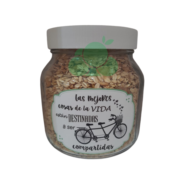 Presentación: Frasco de vidrio x 750gr. (Con frase decorativa)