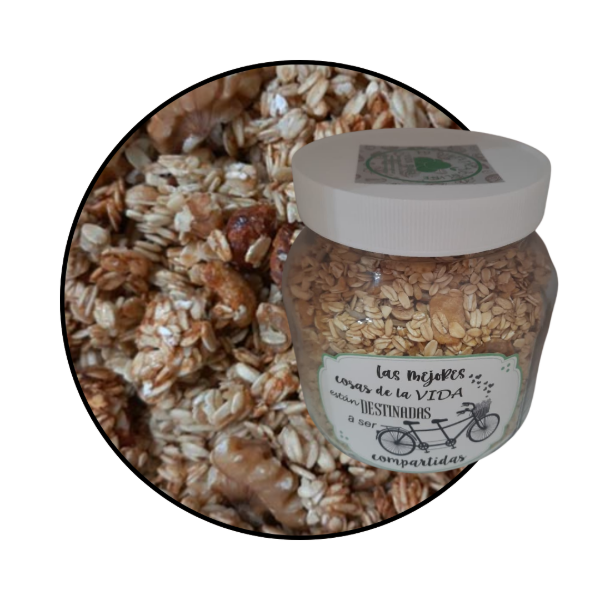 Clásica granola tostada con miel, dulce natural crocante sin azúcar agregada.